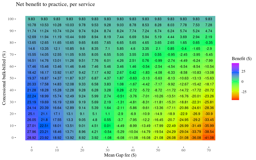 We can draw a heatmap of benefit vs gap-fee and proportion privately-billed.